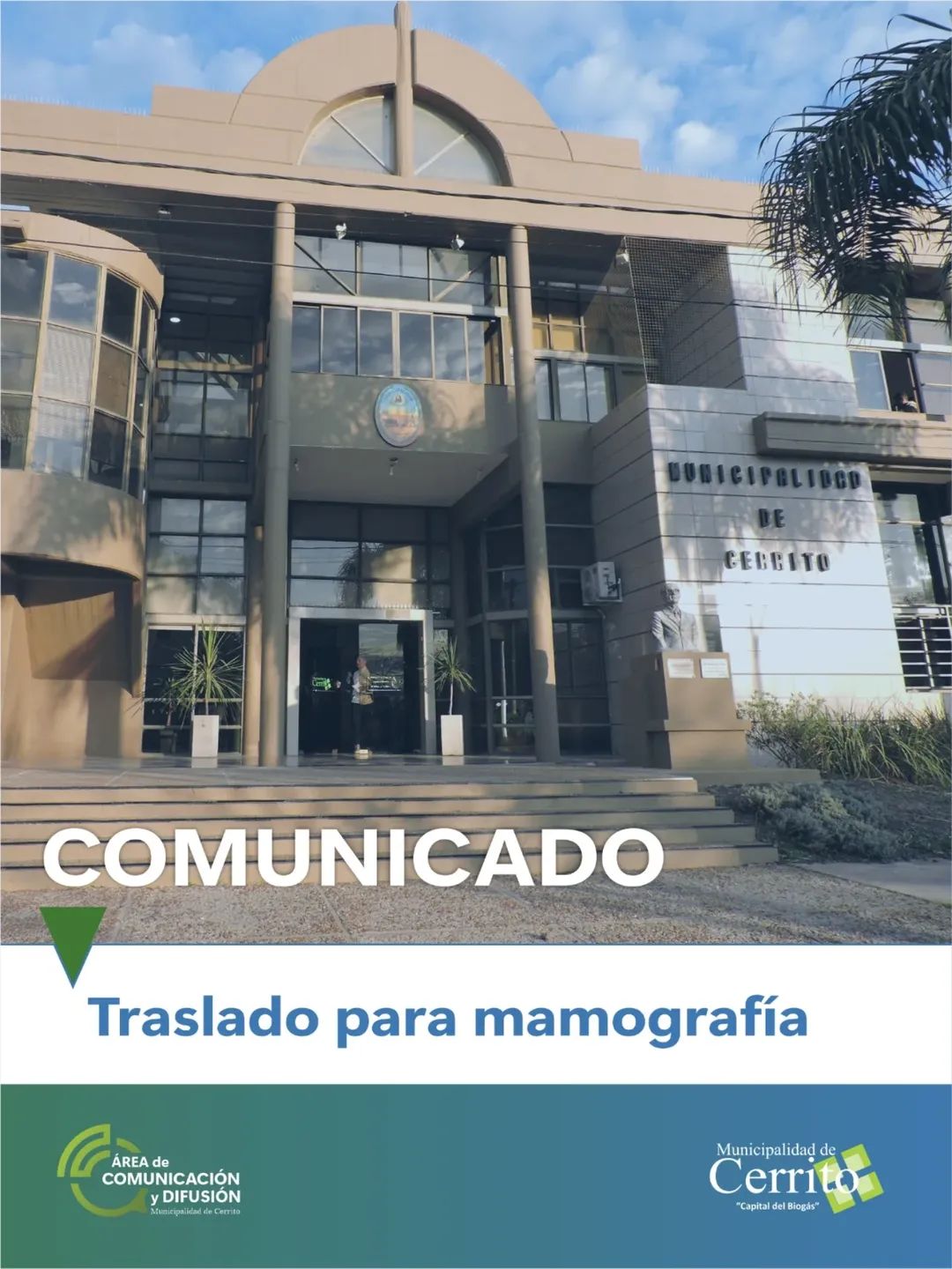 El día viernes pasado, vecinas de nuestra comunidad realizaron sus mamografías preventivas, gracias a las gestiones del Hospital local José M. Miranda, en el marco de las acciones de prevención y detección temprana del cáncer de mama. El Municipio de Cerrito acompañó esta importante iniciativa, colaborando con el traslado de las vecinas. Seguimos promoviendo el cuidado de la salud y la prevención como pilares fundamentales para una mejor calidad de vida.