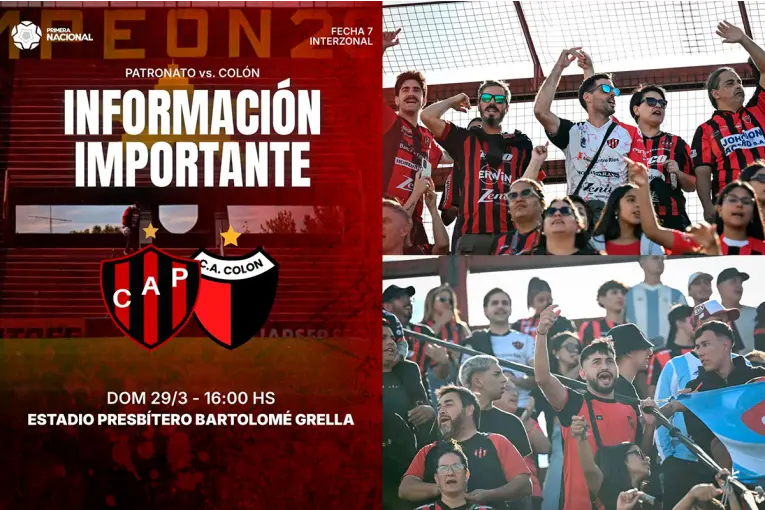 Patronato recibe a Colón: cómo serán los ingresos de hinchas y controles El encuentro por la Primera Nacional se jugará este domingo y contará con un amplio operativo policial. Se dispusieron accesos diferenciados para público local y neutral, además de controles desde el ingreso a la ciudad. 28 de Marzo de 2026 REDACCIÓN ELONCE El encuentro por la Primera Nacional se jugará este domingo y contará con un amplio operativo policial. Se dispusieron accesos diferenciados para público local y neutral, además de controles desde el ingreso a la ciudad. Patronato recibe a Colón este domingo 29 de marzo desde las 16 por el torneo de la Primera Nacional B y, en ese marco, la Policía de Entre Ríos dispuso un operativo especial con medidas de seguridad y organización de ingresos para el público local y neutral. Según se informó desde la Jefatura Departamental Paraná, el despliegue comenzará desde temprano, con la llegada de 60 efectivos al puesto caminero del túnel subfluvial, donde se realizarán controles preventivos. Ver más Política Clasificados online Noticias Entre Ríos En ese sector, además, se llevarán adelante requisas en caso de arribos de colectivos y controles habituales para vehículos particulares, con intervención conjunta de personal policial, toxicología y Gendarmería Nacional. Disposiciones para el público neutral Uno de los puntos centrales del operativo estará enfocado en el público neutral, que tendrá restricciones específicas para su ingreso al estadio. Se indicó que los simpatizantes no podrán asistir con camisetas, banderas ni ningún elemento identificatorio de los clubes, y deberán contar con su entrada adquirida previamente, ya que el día del partido no se habilitarán boleterías. Ver más Suscripciones a revistas Suscripción noticias Cursos de periodismo ciudadano Asimismo, se implementarán distintos anillos de control desde el ingreso a la ciudad hasta las inmediaciones del estadio, donde se solicitará entrada correspondiente al sector neutral y documento de identidad, en el marco del programa Tribuna Segura. En cuanto a los accesos, quienes lleguen desde Santa Fe deberán ingresar de forma peatonal por calle Ayacucho, ya sea desde Almirante Brown o desde Churruarín. También se dispusieron sectores específicos de estacionamiento, con el objetivo de ordenar la circulación. Accesos para hinchas locales y recomendaciones Por su parte, el público local podrá ingresar bajo las condiciones habituales, aunque también se exigirá la presentación de documento de identidad para los controles correspondientes. Los accesos estarán habilitados por calle Grella desde Churruarín y por calle San Nicolás desde Grella, vías que ya son utilizadas regularmente en los partidos disputados en el estadio. Las autoridades recomendaron respetar las indicaciones del operativo y acudir con anticipación para evitar demoras, teniendo en cuenta que los controles se extenderán desde los ingresos a la ciudad hasta el estadio. Finalmente, se recordó que ante cualquier duda o inconveniente, los asistentes podrán dirigirse al puesto policial ubicado en el acceso al túnel subfluvial, donde se brindará orientación sobre los recorridos y condiciones de ingreso. Tu comentario ha sido enviado, el mismo se encuentra pendiente de aprobación...[X] ver más El comentario se encuentra deshabilitado Denunciar comentario Spam o contenido comercial no deseadoIncitación al odio o a la violencia, o violencia gráficaAcoso o bullyingInformación errónea CancelarDenunciar Tu comentario ha sido enviado, el mismo se encuentra pendiente de aprobación...[X] Ver más comentarios IMPORTANTE: Los comentarios publicados son exclusiva responsabilidad de sus autores Elonce.com se reserva el derecho de eliminar aquellos comentarios injuriantes o discriminadores.