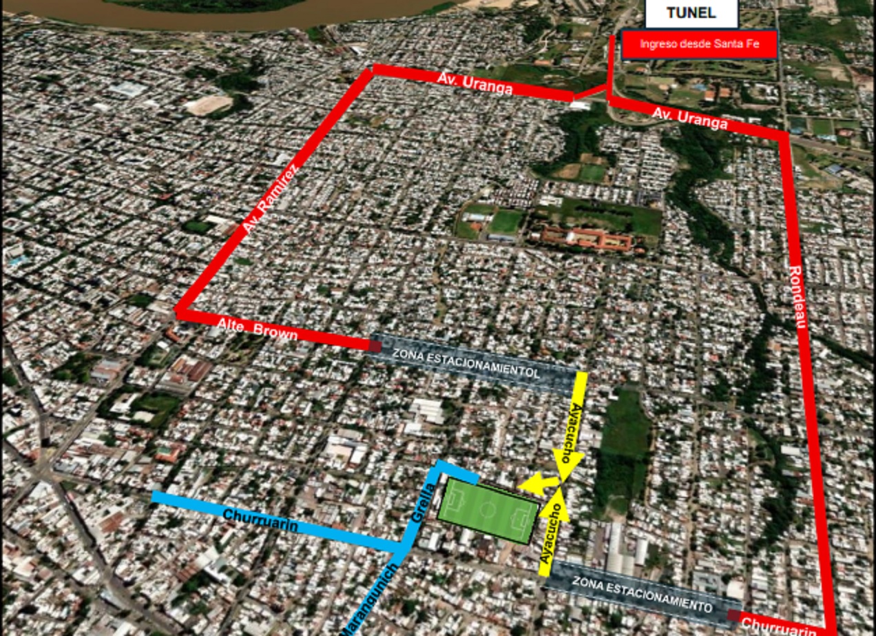 Con motivo de jugarse el próximo domingo a partir de las 16 horas el encuentro por torneo Primera Nacional B, entre el Club Atlético Patronato y el Club Atlético Colón de Santa Fe, desde la Jefatura Departamental de Policía Paraná se informa ingresos de público y las principales pautas de seguridad que se aplicarán: Público neutral Los simpatizantes neutrales no podrán identificarse con ningún club, lo que conlleva a no poder asistir con banderas, camisetas, ni objetos identificatorios. El día del evento NO se encontraran abiertas las boleterías, y por lo tanto las entradas como ya es de público conocimiento deberán ser adquiridas los días previos por los canales habilitados e informados por la organización del club Patronato. Quienes concurran al evento deberán asistir con entrada en mano. Controles de ingreso público neutral Para este evento se han dispuesto distintos controles y anillos de seguridad, los cuales comenzaran desde el ingreso a la ciudad y se extenderán hasta las adyacencias del estadio, allí se solicitara al público neutral que provenga de la ciudad de Santa Fe, entrada de sector neutral, y Documento de identidad, atento se contará con el Programa de identificación Tribuna Segura. Ingresos a la ciudad y al estadio A los fines de facilitar la dinámica de ingreso de las personas que concurran en su calidad de neutral y que provengan de la ciudad de Santa Fe, se ha dispuesto de dos vías de acceso y estacionamiento, las cuales se aconseja respetar a fines de evitar contratiempos. El publico neutral solo podrá acceder en forma peatonal por calle Ayacucho desde calle Almirante Brown o por Ayacucho desde calle Churruarín. Ante cualquier inquietud se deben acercar al control policial ubicado en el acceso al Túnel, donde se les informará en la dirección que deben seguir. Ingreso público local Para el público local las condiciones de acceso serán las que habitualmente se vienen desarrollando, debiendo presentar al momento de control documento de identidad por cuanto se contará con el programa Tribuna Segura, las vías de acceso serán por calle Grella desde Churruarín y por calle San Nicolás desde Grella. Referencias: Simpatizantes Neutrales (amarillo): Desde el ingreso a la ciudad contaran con dos vías de acceso y estacionamiento Vía 1: Av. Uranga Av. Ramírez Alte. Brown Ayacucho Vía 2: Uranga Rondeau Churruarín Ayacucho Simpatizantes Patronato (celeste). Vía Sur: desde Av. Almafuerte por calle Marangunich. Vía Oeste: Acceso por calle Churruarín Vía Norte: Acceso por calle P. Grella.
