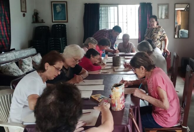 Desde la Dirección de Cultura de la Municipalidad de Concepción del Uruguay se suma una propuesta de arte y recreación para adultos mayores de los hogares San Vicente y Ozanam. Ricardo Villalba, tallerista de la Dirección de Cultura, comenzó a brindar un taller de dibujo, dos veces por mes, concretándose así un espacio para que los residentes puedan dibujar, pero también compartir entre sí. El coordinador de Cultura, Guillermo Lugrin, informó que esta alternativa se suma a otras que desde Cultura de la Municipalidad se brinda desde el año en ambas instituciones, como fue el cierre de año con la actuación de Los Concepcioneros y la visita de otros músicos, y la proyección de películas, tarea a cargo de Aníbal Beorda. Taller de teatro Las Direcciones de Adultos Mayores y de Cultura implementan, por segundo año consecutivo, el Taller de Teatro y Expresión +60, a cargo de Julieta Darquier. Comenzará el 1 de abril y se desarrollará los miércoles, de 15.30 a 17 horas en el SUM del Hospitalito. Los interesados pueden inscribirse de lunes a viernes, de 7 a 13, a través de los teléfonos 3442535443 y 1130036105, o presencialmente en el Hospitalito (Perú 74). Fuente: Prensa de la MdeCdelU. Esta nota es posible gracias al aporte de nuestros lectores |