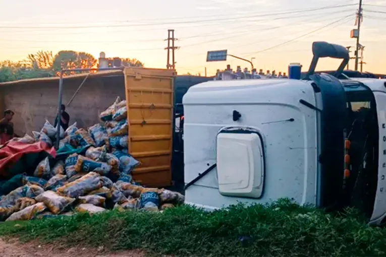 Camión con papas se quedó sin frenos y vecinos quisieron llevarse la carga Un camión cargado con papas se quedó sin frenos mientras transitaba por la Circunvalación de Rosario y vecinos quisieron llevarse la mercadería. 1 de Abril de 2026 Un camión cargado con papas se quedó sin frenos mientras transitaba por la Circunvalación de Rosario y vecinos quisieron llevarse la mercadería. Un camión cargado con 27.000 kilos de papas volcó este miércoles a la madrugada en Avellaneda y Circunvalación, en la zona sur de Rosario. La versión preliminar de lo sucedido indicaba que el vehículo se habría quedado sin frenos y el conductor perdió el dominio del vehículo. El siniestro, que no causó heridas en el chofer ni en otras personas, se produjo alrededor de las 3.15. El tránsito sobre Avellaneda hacia el sur, estaba cortado porque el vehículo y parte de la carga quedaron esparcidos sobre el pavimento. Ver más Podcast noticias semanales Eventos comunitarios promoción Fotografía eventos sociales Una persona que se identificó como dueño del cargamento de papas contó a LT8 lo sucedido: "Este es un camión que contratamos como flete. Se dirigía al Mercado de Productores con mercadería que compramos en Carmen de Patagones. De acuerdo a lo que dijo el chofer cuando bajaba desde Circunvalación por Avellaneda se quedó sin frenos. Se asustó, dobló al revés porque tenía que girar hacia 27 de Febrero, pero giró al revés y volcó el camión". "Se nota que no venía tan rápido, porque la carga no se desparramó muy lejos. Si hubiera ido a mayor velocidad, hubiera sido mayor el desastre. El chofer está bien, asustado, pero no sufrió heridas. Esto sucedió 3.15 o 3.30. La Policía llegó enseguida, se pusieron a disposición, porque en un momento tuvimos un tumulto de gente que empezó a llevarse mercadería y la situación se puso medio tensa, pero por suerte ya está todo bien", explicó el dueño de la carga. De acuerdo a ese testimonio, el camión transportaba 27 mil kilos de papas distribuidas en 1.500 bolsas, "lo que corresponde en cuanto a capacidad de carga. La mayoría de la mercadería se salvó porque el vuelco fue lento". Mientras se realizaba el traspaso de la hortaliza, también se esperaba el arribo de una grúa para enderezar el vehículo y despejar la calzada. Tu comentario ha sido enviado, el mismo se encuentra pendiente de aprobación...[X] ver más El comentario se encuentra deshabilitado Denunciar comentario Spam o contenido comercial no deseadoIncitación al odio o a la violencia, o violencia gráficaAcoso o bullyingInformación errónea CancelarDenunciar Tu comentario ha sido enviado, el mismo se encuentra pendiente de aprobación...[X] Ver más comentarios IMPORTANTE: Los comentarios publicados son exclusiva responsabilidad de sus autores Elonce.com se reserva el derecho de eliminar aquellos comentarios injuriantes o discriminadores.