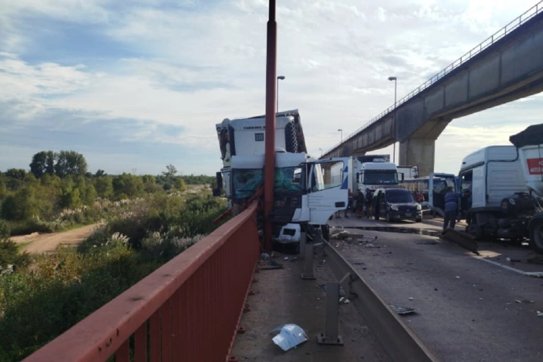 Un accidente protagonizado por dos camiones se registró este miércoles sobre el puente Urquiza, en la Autovía 12, a la altura del kilómetro 110. El impacto obligó a interrumpir el tránsito en ambos sentidos de circulación, generando complicaciones en la zona. Bomberos de Zárate trabajan por jurisdicción en el lugar, realizando las tareas necesarias para liberar la calzada y garantizar la seguridad. Se recomienda a los conductores evitar el sector y transitar con precaución hasta que se normalice la circulación.
