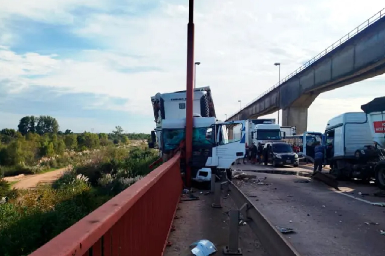 En un accidente impactante, un camión chocó y estuvo a punto de precipitarse en el complejo Zárate Brazo Largo, causando alarma sobre la Ruta Nacional 12, corredor clave entre Buenos Aires y Entre Ríos. Un choque entre dos camiones en el puente General Urquiza, dentro del Complejo ZárateBrazo Largo, generó este miércoles el corte total del tránsito en el cruce, afectando la circulación en una de las principales conexiones viales de la región. El siniestro tuvo lugar cerca de las 16,30 a la altura del kilómetro 110, en el sentido SurNorte. Como consecuencia del impacto, ambos vehículos quedaron atravesados sobre la calzada, lo que provocó la interrupción completa del tránsito en ambas manos. La situación generó largas demoras y complicaciones para quienes transitaban por la zona, ya que el corte es total y no se habilitaron desvíos inmediatos en el lugar. En el sitio trabajan dotaciones de Bomberos de Zárate junto a efectivos de distintas fuerzas de seguridad, quienes llevan adelante tareas de asistencia, ordenamiento vehicular y remoción de los rodados involucrados. Según relataron a Diario Río Uruguay testigos ocasionales un grupo de concordienses que transitaba por el lugar, el camión se desvió hacia la derecha, impactando violentamente contra las defensas del puente. Como consecuencia del choque, la unidad destruyó parte de la baranda de contención, los guardarraíles de seguridad y terminó contra una columna del sistema de alumbrado público. El dato más impactante es que, tras el choque, el camión quedó en una posición extremadamente riesgosa: parte de la cabina y el acoplado quedaron muy cerca del aire, mientras que el sector del conductor permanecía sobre la calzada. Fue un milagro que no cayera al vacío, coincidieron los testigos. En cuanto a las consecuencias, se indicó que dos personas que viajaban en el camión resultaron heridas, aunque afortunadamente no presentarían lesiones de gravedad.