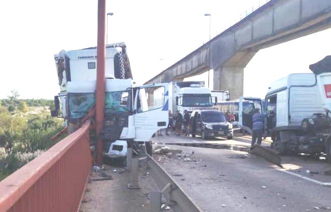 En un accidente impactante, un camión chocó y estuvo a punto de precipitarse en el complejo Zárate Brazo Largo, causando alarma sobre la Ruta Nacional 12, corredor clave entre Buenos Aires y Entre Ríos. Un choque entre dos camiones en el puente General Urquiza, dentro del Complejo ZárateBrazo Largo, generó este miércoles el corte total del tránsito en el cruce, afectando la circulación en una de las principales conexiones viales de la región. El siniestro tuvo lugar cerca de las 16,30 a la altura del kilómetro 110, en el sentido SurNorte. Como consecuencia del impacto, ambos vehículos quedaron atravesados sobre la calzada, lo que provocó la interrupción completa del tránsito en ambas manos. La situación generó largas demoras y complicaciones para quienes transitaban por la zona, ya que el corte es total y no se habilitaron desvíos inmediatos en el lugar. En el sitio trabajan dotaciones de Bomberos de Zárate junto a efectivos de distintas fuerzas de seguridad, quienes llevan adelante tareas de asistencia, ordenamiento vehicular y remoción de los rodados involucrados. Riesgo para el conductor Según relataron a Diario Río Uruguay testigos ocasionales un grupo de concordienses que transitaba por el lugar, el camión se desvió hacia la derecha, impactando violentamente contra las defensas del puente. Como consecuencia del choque, la unidad destruyó parte de la baranda de contención, los guardarraíles de seguridad y terminó contra una columna del sistema de alumbrado público. El dato más impactante es que, tras el choque, el camión quedó en una posición extremadamente riesgosa: parte de la cabina y el acoplado quedaron muy cerca del aire, mientras que el sector del conductor permanecía sobre la calzada. Fue un milagro que no cayera al vacío, coincidieron los testigos. (Elonce) Radio: 102.5 FM | TV: Canales 52 & 507 | LRM774 Génesis Multimedia ((HD Radio & TV))