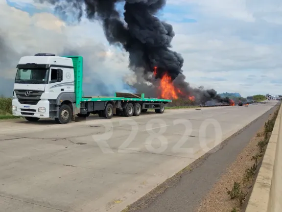 Choque en la Ruta 14: desconocen que pasó con el conductor de la cisterna que se incendió tras impactar a otro camión Un siniestro vial por alcance se registró este jueves 2 de abril a las 12:50 horas sobre la Ruta Nacional 14, kilómetro 63,5, en el carril que une Gualeguaychú con Concepción del Uruguay. El incidente es a unos 300 metros del complejo termal de la ciudad. El incidente involucró a dos camiones y derivó en el incendio de uno de ellos del cual se desconoce qué sustancia transportaba en la cisterna, con el corte total de la circulación en ambos carriles. El vehículo identificado hasta el momento es un camión Mercedes Benz con acoplado, sin carga, perteneciente a la empresa Transportes Notari SH, con sede en Caseros, departamento Uruguay. El rodado provenía de Buenos Aires con destino a esa localidad. Su conductor, que no sufrió lesiones, declaró ante las autoridades que fue embestido por detrás por un segundo camión tipo cisterna de carga desconocida que circulaba detrás. Como consecuencia del impacto, el camión cisterna salió de la calzada y se incendió en la banquina este. Al momento del relevamiento, el fuego aún no había sido sofocado, por lo que no era posible determinar el tipo exacto de vehículo ni la cantidad de ocupantes en su interior. A simple vista, el personal interviniente no observó personas salir del rodado siniestrado. Operativo de emergencia En el lugar trabajan ocho dotaciones de Bomberos Voluntarios de Gualeguaychú, a las que se sumaron tres unidades cisterna del Gobierno Municipal. También interviene una ambulancia del Servicio 107 de Emergencias Prehospitalarias del Hospital Centenario, además de efectivos de Gendarmería Nacional y de la Policía Caminera Provincial. La investigación del hecho quedó a cargo del fiscal Jorge Gutiérrez, quien ordenó realizar controles de alcoholemia al conductor, la elaboración del informe correspondiente y el secuestro del tacómetro del camión. Además, dispuso la intervención directa de los equipos de Criminalística, médico forense y perito mecánico. El tránsito permanece inhabilitado en ambos carriles de la Ruta Nacional 14 a la altura del kilómetro 63,5. Las autoridades no precisaron aún un tiempo estimado de restablecimiento de la circulación.
