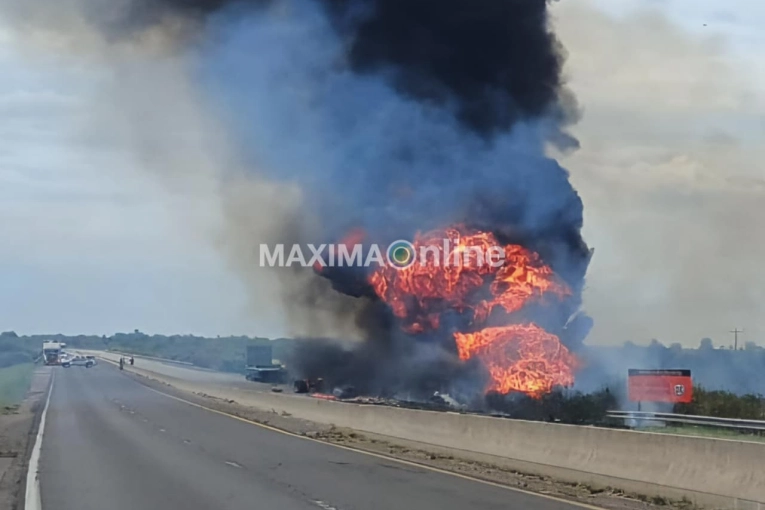 Un camionero de 52 años domiciliado en Capilla del Señor, provincia de Buenos Aires, murió calcinado a las 13 de este jueves en el marco de un siniestro vial ocurrido en el kilómetro 63,5 de la Ruta Nacional 14, a poca distancia de la entrada a Gualeguaychú, en sentido hacia Concepción del Uruguay. El trágico siniestro tuvo como protagonistas a un camión con cisterna que transportaba fuel oil, que tuvo un choque por alcance con otro camión Mercedes Benz con acoplado, sin carga, que viajaba hacia Caseros, departamento Uruguay en Entre Ríos. El violento choque desde atrás por parte del camión con fuel oil, de la empresa Más Petrol, terminó con el incendio de ese vehículo. El conductor del vehículo que iba adelante, un hombre de 58 años domiciliado en Chaco, sintió el impacto de la colisión y se bajó rápidamente, con lo cual salvó su vida. El jefe de Policía de Gualeguaychú, comisario mayor Ramiro Urroz Denaday, dijo a MÁXIMA que la escena mostraba claramente el tremendo impacto del camión que circulaba por detrás hacia el que iba adelante, aunque se desconocen las causas que motivaron la violenta colisión.El camión cisterna salió de la ruta y se incendió en la banquina este, mientras que el otro camión con acoplado sin carga quedó adelante. Urroz Denaday describió que el chofer del camión que iba adelante se encontraba en un estado de shock. Poco después del siniestro, el conductor fue llevado a la Jefatura Departamental de Policía de Gualeguaychú, e interviene el fiscal Jorge Gutiérrez. El trágico siniestro se produjo casi a la altura de las Termas del Guaychu, y el voraz incendio obligó a un corte total del tránsito. Ocho dotaciones de Bomberos Voluntarios de Gualeguaychú con 20 efectivos y tres camiones cisternas de la Municipalidad trabajaron para extinguir el fuego, que luego se derivó al campo cercano.