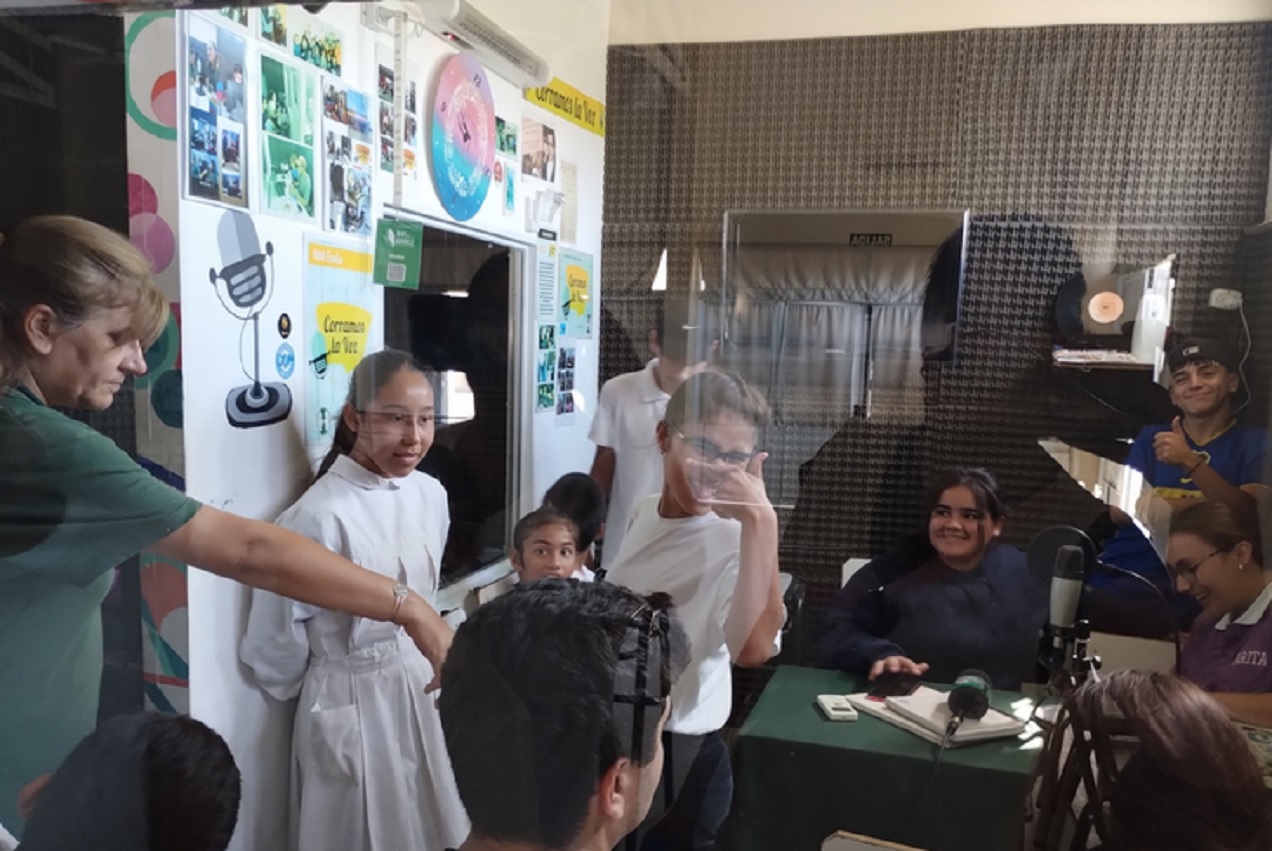 El programa Voces de la Radio, Corramos la Voz se consolida, año tras año, como una valiosa experiencia de trabajo articulado entre la Escuela Integral 9 Doctor Luis Agote y la Escuela Secundaria 4 Bicentenario de la Patria, de San Salvador. Promueve el aprendizaje colaborativo, la participación y la educación inclusiva. Esta propuesta educativa se sostiene gracias al compromiso de docentes y estudiantes de ambas instituciones, quienes construyen un espacio de encuentro, aprendizaje y comunicación que trasciende las aulas y fortalece el trabajo en red entre niveles y modalidades del sistema educativo. Se desarrolla cada 15 días, generando instancias de intercambio en las que estudiantes de la Escuela Integral 9 y alumnos de 6º año de la orientación Comunicación de la Escuela Secundaria 4, quienes trabajan de manera conjunta en la producción de contenidos radiales. A través de entrevistas, comentarios, saludos y distintos formatos, los jóvenes tienen la oportunidad de expresarse, compartir ideas y visibilizar diversas temáticas de interés para la comunidad. Cabe destacar, además, que cada programa queda registrado en las redes sociales de ambas instituciones, tanto en el canal de YouTube de la escuela secundaria como en su streaming. Esta experiencia demuestra que, más allá de las diferencias o limitaciones, los estudiantes comparten los mismos intereses, curiosidades y deseos de comunicar. La radio se convierte así en una herramienta pedagógica que favorece la participación, la inclusión, la escucha y el respeto por la palabra del otro. Cada institución participa con objetivos específicos propios de su propuesta pedagógica, pero también con metas comunes, centradas en fortalecer la comunicación, promover la inclusión educativa y generar experiencias de aprendizaje significativas a partir del trabajo colaborativo. A lo largo de estos cinco años, el proyecto no solo ha permitido que los estudiantes desarrollen habilidades comunicativas, sino que también ha generado un valioso proceso de retroalimentación entre pares, donde todos aprenden de todos, construyendo vínculos, derribando barreras y demostrando que la educación se enriquece cuando se abre al encuentro y al trabajo compartido. Entre las acciones de mayor repercusión del proyecto se destacan la transmisión en vivo vía streaming del acto por el 50º aniversario de la Escuela de Educación Integral (EEI) 9 Doctor Luis Agote, celebrado en mayo de 2025, y el Festival por la Inclusión, realizado en octubre del ciclo lectivo 2024. El espacio radial continúa creciendo, reafirmando el valor de la educación inclusiva y del trabajo articulado entre instituciones de la comunidad educativa.