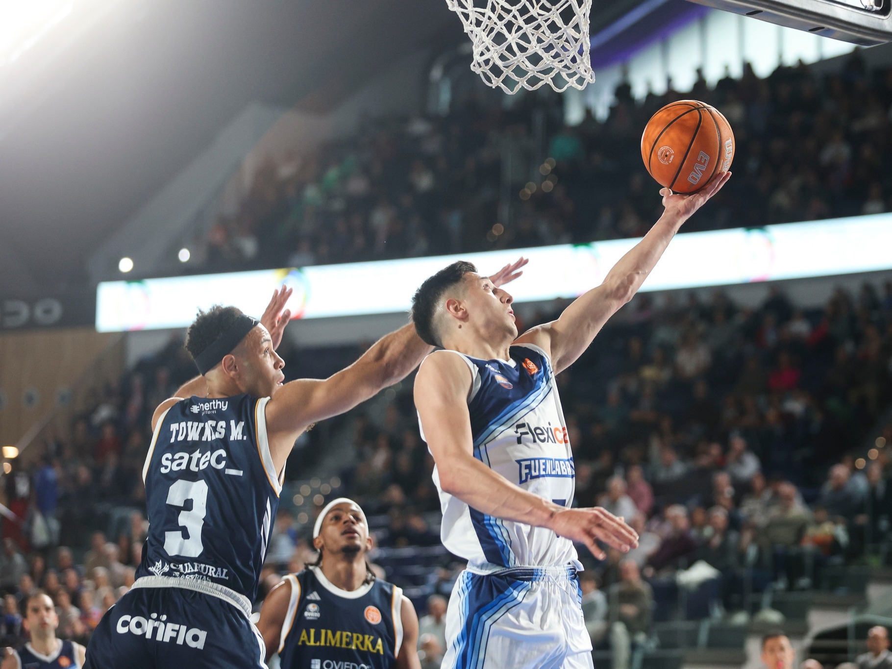 El conjunto madrileño se recuperó de la derrota sufrida el pasado fin de semana ante CB Zamora y se impuso por 73 a 65, con parciales de 18-13, 21-15, 19-20 y 18-14. Mateo Díaz tuvo una destacada actuación y fue una de las figuras en la victoria como visitante del CB Fuenlabrada sobre Alimerka Oviedo, en el marco de la 29ª jornada de la fase regular de la Primera FEB, la segunda división del básquet español. El base de Gualeguaychú volvió a ser determinante: finalizó como el segundo máximo anotador de su equipo con 16 puntos, producto de 7/13 en dobles, 0/3 en triples y 2/2 en tiros libres. Además, completó su planilla con 6 rebotes, 3 asistencias y 3 recuperos en 31 minutos de juego. El máximo goleador del Fuenlabrada fue el brasileño Vítor Alves Benite, con 20 puntos, mientras que en el conjunto local se destacó el estadounidense Gregory Parham II, autor de 24 unidades. Con este resultado, Fuenlabrada alcanzó su 15ª victoria en 28 presentaciones y se ubica en la séptima posición, dentro de la zona de playoffs. El equipo mantiene una ventaja sobre Alicante, que por el momento queda fuera de los puestos de clasificación, cuando restan cinco fechas para el cierre de la fase regular. En la próxima jornada, el conjunto madrileño será local frente a Leyma Coruña, líder del certamen con un sólido registro de 25 triunfos y apenas tres derrotas.