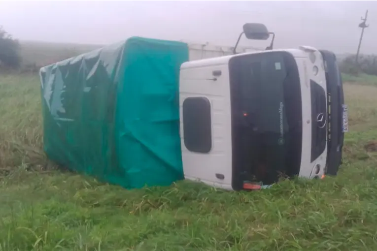 Un camión Mercedes-Benz con acoplado cubierto por lona terminó volcado sobre uno de sus laterales, quedando fuera de la calzada, en una zona de banquina con abundante vegetación. El accidente ocurrió en la mañana de este miércoles sobre la Ruta Nacional 12, a la altura del kilómetro 531, en las inmediaciones de Alcaraz Sur. Si bien las causas del siniestro aún se encuentran en etapa de investigación, no se descarta que las intensas lluvias registradas en la región hayan influido en la pérdida de control, teniendo en cuenta el estado resbaladizo de la ruta y la acumulación de agua en sectores bajos. En la imagen se puede observar cómo el rodado quedó completamente recostado, evidenciando la magnitud del incidente. Hasta el momento no trascendieron datos oficiales sobre personas lesionadas. Lluvia torrencial en Alcaraz En la localidad de Alcaraz se registran lluvias de gran intensidad durante las últimas horas, tal como lo había anticipado el pronóstico meteorológico. Según los primeros datos, se acumulan alrededor de 150 milímetros de agua caída, una cifra significativa que ya comienza a generar complicaciones en distintos sectores, publicó FM Brisas Santa Elena. Vecinos reportan calles anegadas, dificultades para circular y la necesidad de resguardarse en sus hogares ante la persistencia de las precipitaciones. Algunas familias se encuentran en situación de alerta debido al ingreso de agua en zonas bajas. Se recomienda a la población extremar precauciones, evitar transitar por áreas comprometidas y mantenerse informada a través de los canales oficiales ante posibles nuevas actualizaciones del clima.