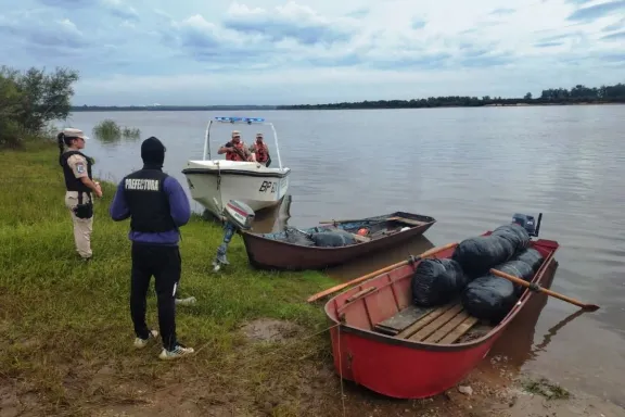 Personal de la Prefectura Naval Argentina llevó adelante un operativo en Concordia que culminó con la detención de dos personas y el secuestro de mercadería valuada en aproximadamente 48 millones de pesos, en el marco de una presunta infracción al Código Aduanero. El procedimiento se realizó en la mañana del 14 de abril en inmediaciones del ex Embarcadero El Ferrari, donde efectivos del área de Investigaciones detectaron movimientos sospechosos durante tareas de patrullaje preventivo. Según se informó, los uniformados observaron a dos hombres que realizaban maniobras de carga de bultos en embarcaciones menores, las cuales tendrían como destino la ciudad de Salto, en la República Oriental del Uruguay. Ante esta situación, el personal prefecturiano intervino de inmediato, logrando la aprehensión de los involucrados y el secuestro de un importante cargamento compuesto por 1.900 prendas de vestir, además de embarcaciones, motores fuera de borda y otros elementos que serían utilizados para concretar la operatoria ilegal. De acuerdo a las estimaciones oficiales, el aforo total de la mercadería incautada asciende a unos 48 millones de pesos. En el caso tomó intervención el Juzgado Federal de Concordia, mientras que desde la fuerza señalaron que continuarán reforzando los controles en la zona para prevenir el contrabando y garantizar la seguridad en la jurisdicción.