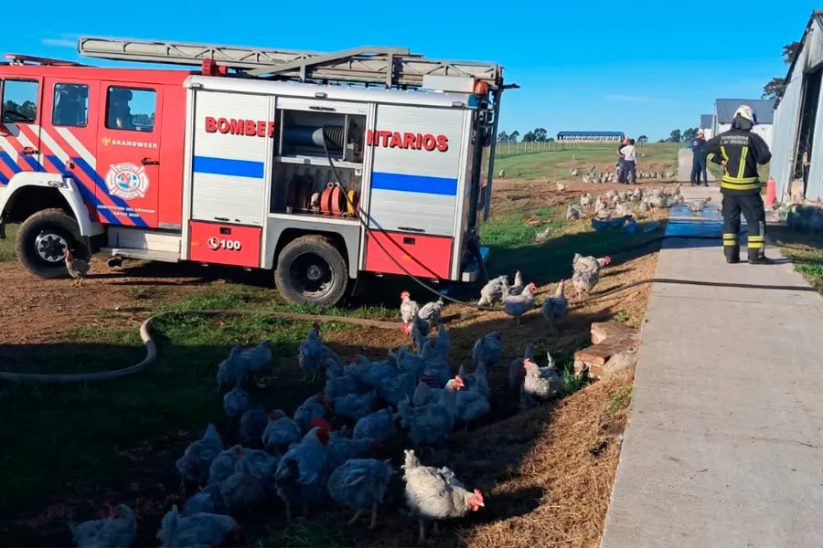 Este viernes se registró un incendio en un galpón de gallinas ponedoras que provocó importantes daños materiales y la muerte de una gran cantidad de aves. El establecimiento avícola afectado está ubicado sobre la Autovía Nacional Artigas, a la altura del kilómetro 135, en cercanías del arroyo El Colman, en Pronunciamiento, departamento Uruguay. El siniestro se desató en un galpón de aproximadamente 170 metros perteneciente a la empresa FADEL, donde funcionaba una unidad de producción avícola. Tras el alerta, se activó el protocolo de emergencia en el cuartel de bomberos, lo que permitió el rápido despliegue de unidades hacia el lugar. Intenso operativo de bomberos Según informaron, en primera instancia, partieron dos unidades: una autobomba y un camión cisterna, acompañados por personal de apoyo para combatir las llamas. Pero debido a la magnitud del incendio, se solicitó la colaboración de Bomberos Voluntarios de Pronunciamiento, quienes acudieron con una unidad adicional para reforzar las tareas de control. El operativo se desarrolló en condiciones complejas, con un foco ígneo de gran intensidad que afectó rápidamente la estructura del galpón. Colapso y pérdidas totales Como consecuencia del avance del fuego, el techo del galpón colapsó, lo que agravó la situación y dificultó las tareas de extinción. La mayoría de las gallinas que estaban en los galpones murieron a causa de las llamas y la inhalación de humo, mientras que solo una mínima cantidad logró sobrevivir. Las pérdidas fueron totales en el sector afectado, tanto en infraestructura como en la producción avícola, lo que representa un fuerte impacto para la empresa. Las causas del incendio no fueron determinadas y se aguardan peritajes para establecer el origen del siniestro.