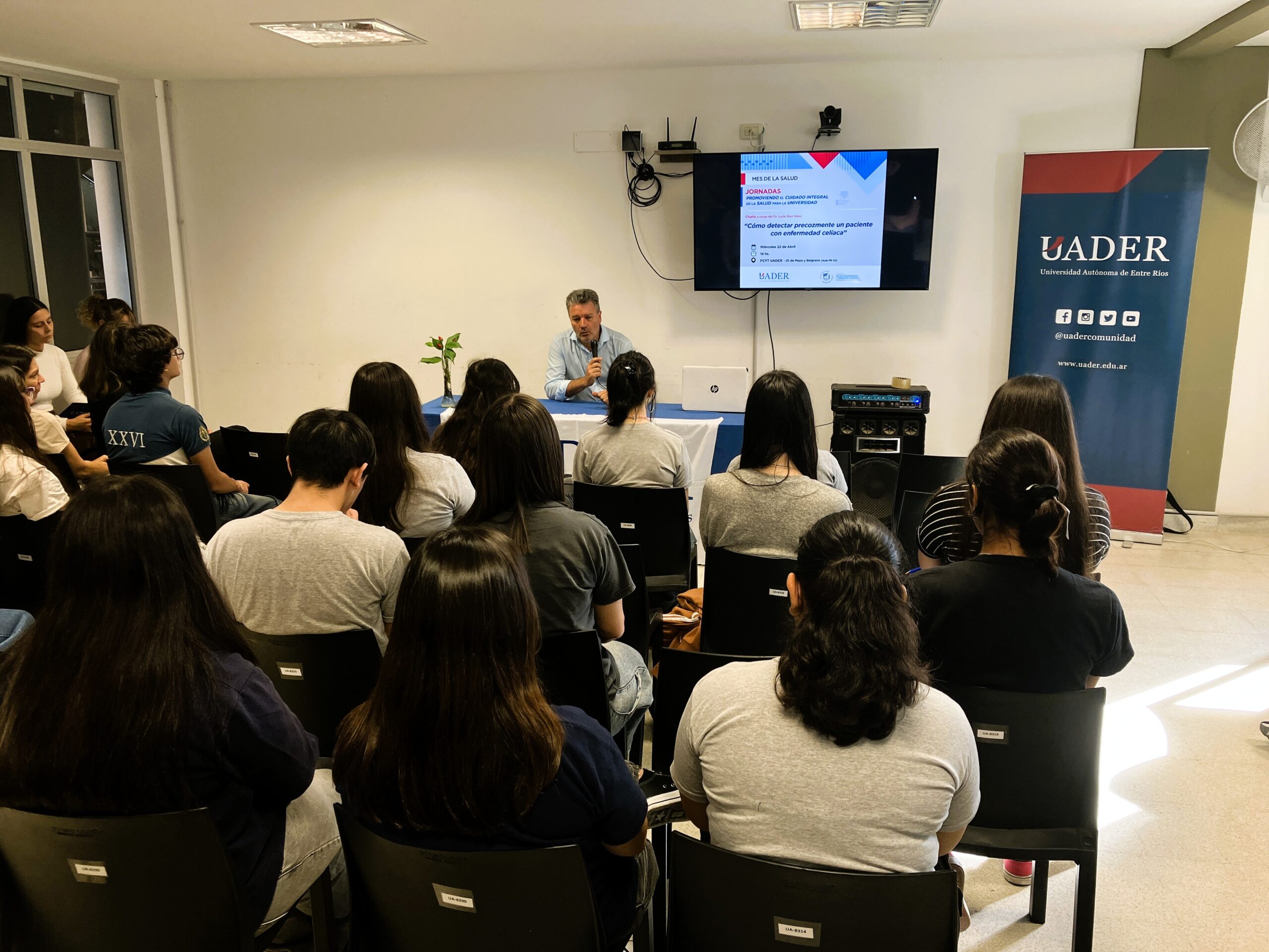 Se llevó a cabo el primer encuentro de las Jornadas de Salud destinadas a la comunidad universitaria y al público en general En el marco del Día Mundial de la Salud, la Universidad Autónoma de Entre Ríos (UADER), junto a la Municipalidad de Concepción del Uruguay, dio inicio a las Jornadas de Salud, una propuesta orientada a la promoción del cuidado integral en el ámbito universitario. La primera actividad se desarrolló el miércoles 22 de abril en la Facultad de Ciencia y Tecnología (FCyT UADER), donde el Dr. Lucio Díaz Vélez brindó la charla titulada Cómo detectar precozmente un paciente con enfermedad celíaca. Durante el encuentro, se abordaron herramientas para reconocer signos, favorecer diagnósticos tempranos y promover la prevención de esta enfermedad. La propuesta, abierta y gratuita, convocó a estudiantes, docentes y público en general, quienes participaron de un espacio de formación, reflexión y concientización en torno a la salud. Estas jornadas son impulsadas por la Coordinación de Rectorado de UADER, en articulación con las distintas facultades de la sede Concepción del Uruguay y la Secretaría de Salud, Derechos Humanos y Discapacidad del municipio, con el objetivo de fortalecer el vínculo entre la universidad y la comunidad. El ciclo continuará el lunes 27 de abril con una nueva jornada en la Facultad de Humanidades, Artes y Ciencias Sociales, donde se abordará la temática de la alimentación saludable en la vida universitaria. Asimismo, en el mes de mayo se desarrollará una charla-taller sobre primeros auxilios, RCP y uso de DEA.