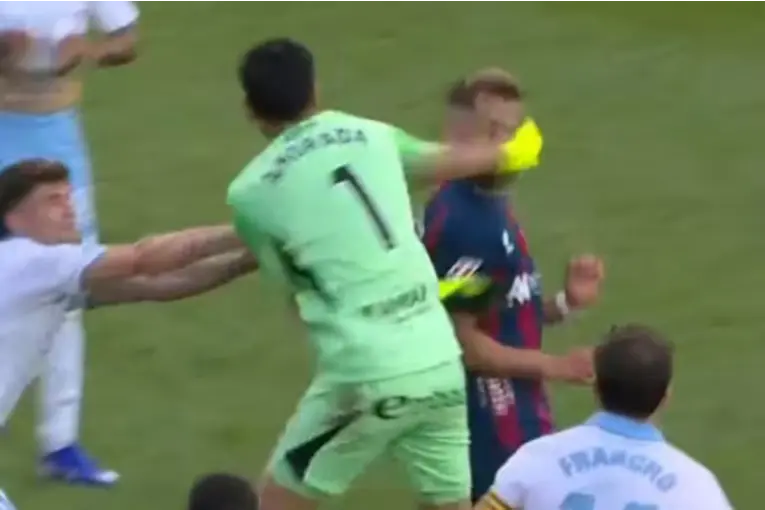 Video: la brutal agresión del ex Boca, Esteban Andrada, a un rival en España La brutal agresión de Esteban Andrada a un rival en la segunda división de España generó escándalo tras el violento final del derbi entre Zaragoza y Huesca. 26 de Abril de 2026 La brutal agresión de Esteban Andrada a un rival en la segunda división de España generó escándalo tras el violento final del derbi entre Zaragoza y Huesca. La brutal agresión de Esteban Andrada a un rival en la segunda división de España marcó uno de los episodios más polémicos del fútbol reciente en ese país, luego del caótico final del derbi aragonés entre Huesca y Zaragoza. El arquero argentino quedó en el centro de la escena tras ser expulsado y protagonizar un violento enfrentamiento con un futbolista rival que derivó en una fuerte sanción disciplinaria. ¡ANDRADA PEGÓ UNA PIÑA DE LOCOS! | #Shorts El encuentro, disputado en el estadio El Alcoraz, terminó con triunfo 1-0 para Huesca, en un contexto cargado de tensión por la situación de ambos equipos, que luchan por evitar el descenso. El único gol del partido fue convertido por Sielva de penal, en un desarrollo que ya venía caldeado desde el primer tiempo, cuando el propio Andrada le había atajado un penal al mismo jugador. Desde ese momento, el clima se volvió cada vez más hostil. Hubo empujones, protestas y discusiones entre jugadores, mientras el árbitro intentaba mantener el control de un partido que se le escapaba de las manos. La situación se agravó en el tramo final, cuando una serie de decisiones arbitrales y revisiones del VAR encendieron aún más los ánimos. El momento de la expulsión y la reacción del arquero La jugada que desató el escándalo ocurrió en tiempo adicionado, cuando Andrada intentó reanudar rápidamente el juego desde mitad de cancha. Sin embargo, el árbitro, tras revisar una acción previa en el monitor, decidió detener la ejecución del tiro libre. En ese contexto, se produjo un cruce verbal con el defensor Jorge Pulido. El intercambio escaló rápidamente. Andrada reaccionó con un empujón sobre el jugador rival, lo que le valió la segunda tarjeta amarilla y, por ende, la expulsión. Pero lejos de retirarse del campo, el arquero argentino perdió el control y se dirigió directamente hacia Pulido, a quien le propinó un violento golpe de puño que lo derribó en el acto. La escena generó un descontrol generalizado en el terreno de juego, con jugadores de ambos equipos interviniendo en medio de empujones, corridas y discusiones. La situación se volvió aún más caótica cuando otros futbolistas se involucraron en el enfrentamiento, lo que obligó a la intervención de cuerpos técnicos y personal de seguridad, consignó La Nación. Caos en el campo y sanciones en camino En medio del tumulto, el arquero de Huesca, Dani Jiménez, también fue expulsado tras participar de los incidentes. El partido terminó completamente desvirtuado, con imágenes que rápidamente recorrieron la prensa española, donde el episodio fue calificado como una tangana histórica por el nivel de desorden registrado. Recién después de varios minutos, el clima logró apaciguarse y los equipos se retiraron del campo. Andrada se dirigió al vestuario entre fuertes cuestionamientos y a la espera de una sanción que, según trascendió, podría ser severa debido a la gravedad de la agresión. Horas más tarde, el arquero argentino emitió un mensaje de arrepentimiento en el que reconoció su error. Estoy muy arrepentido, no es una buena imagen para el club ni su gente. A lo largo de mi carrera solo tuve una expulsión, por tocar la pelota con la mano fuera del área. Fue una situación límite, me salí de contexto, expresó. Además, agregó: Le pido disculpas a Jorge Pulido, fue un acto en el que me desconecté en ese momento. Estoy para aceptar las consecuencias y las explicaciones que me pueda pedir la Liga. Tu comentario ha sido enviado, el mismo se encuentra pendiente de aprobación...[X] ver más El comentario se encuentra deshabilitado Denunciar comentario Spam o contenido comercial no deseadoIncitación al odio o a la violencia, o violencia gráficaAcoso o bullyingInformación errónea CancelarDenunciar Tu comentario ha sido enviado, el mismo se encuentra pendiente de aprobación...[X] Ver más comentarios IMPORTANTE: Los comentarios publicados son exclusiva responsabilidad de sus autores Elonce.com se reserva el derecho de eliminar aquellos comentarios injuriantes o discriminadores.