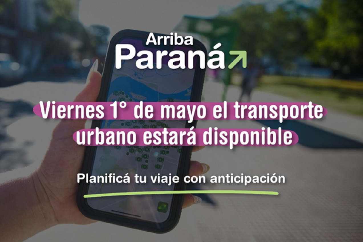 La Municipalidad de Paraná informa que, con motivo del Día del Trabajador, el servicio de transporte urbano de pasajeros brindado por la empresa San José funcionará con cronograma correspondientes a los días domingo, garantizando así la prestación del servicio en toda la ciudad. Se recomienda a los vecinos y vecinas prever sus traslados con anticipación y consultar los horarios en la aplicación Arriba Paraná.
