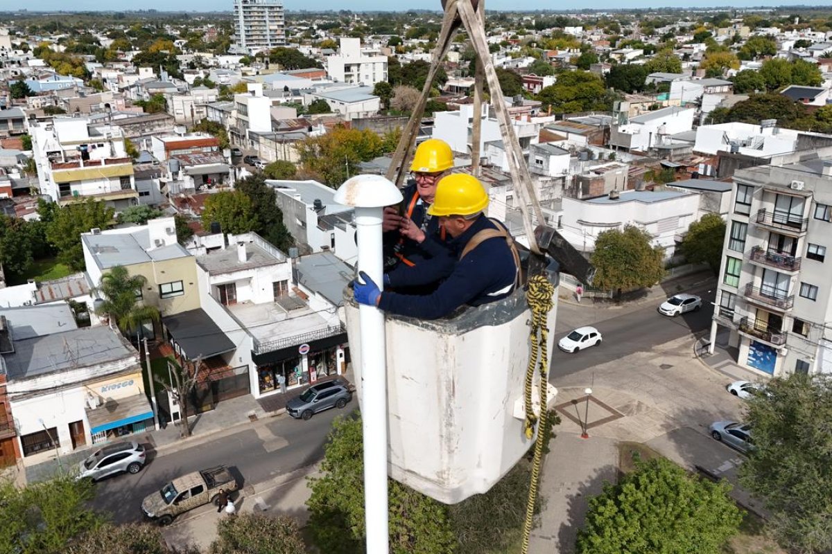 Una grúa de gran porte tomó altura sobre esa zona céntrica para devolver operatividad al emblema de 25 metros que está en el centro del espacio público dedicado al prócer creador de la Bandera Argentina. El Gobierno de Gualeguaychú completó las tareas de reparación del mástil de la Plaza Belgrano para que vuelva a estar funcional. El origen del desperfecto se remonta a unas semanas atrás, cuando un día de viento excesivo provocó que el cable destinado a izar la Bandera Nacional quedara atascado y enredado en la cúspide de la estructura, a 25 metros de altura. La complejidad del problema radicó en su ubicación exacta: la última roldana por donde pasa el cable de acero, en el punto más alto del mástil, hizo necesaria la contratación de una grúa de gran envergadura para que los operarios pudieran acceder al mecanismo dañado. La maquinaria se apostó dentro del propio predio de la plaza para elevar a los trabajadores de la Dirección de Espacios Verdes en una canasta metálica hasta la cima de la estructura, donde realizaron el reemplazo completo del mecanismo averiado. El viejo cable, que contaba con una cubierta de plástico totalmente desgastada por el tiempo, fue sustituido por uno nuevo de 6 milímetros, íntegramente de acero y sin recubrimiento, una decisión técnica orientada a garantizar mayor durabilidad y funcionalidad a largo plazo. Cabe señalar que la última puesta en valor del mástil data de hace 11 años, lo que explica el nivel de deterioro que presentaba el conjunto de poleas y el sistema de izamiento. Una vez concluidos los trabajos, la Bandera Argentina volvió a flamear sobre la plaza que homenajea a su creador: Manuel Belgrano, el abogado, economista, periodista y militar que diseñó el emblema patrio. El mantenimiento de los espacios simbólicos de la ciudad no es un detalle menor: garantizar que la Bandera Nacional pueda ser izada en condiciones en el mástil de una de las plazas más representativas de Gualeguaychú es, en el fondo, una forma concreta de honrar la memoria histórica y de transmitir a las generaciones presentes el valor de los símbolos que constituyen la identidad nacional, especialmente en vísperas de las fechas patrias.